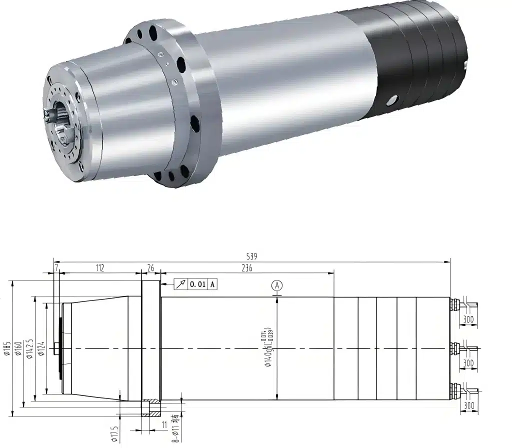 The A2004561 is a high-power, high-rigidity electric spindle designed for demanding applications in precision engraving, milling, and vertical machining centers. Built with a substantial 140mm outer diameter, it delivers an exceptional combination of 30 N·m high torque and 11 kW power, supported by ultra-high structural stiffness. Engineered for stability and accuracy, it is the ideal core component for machining tough materials and complex geometries where rigidity, power, and thermal control are critical.
