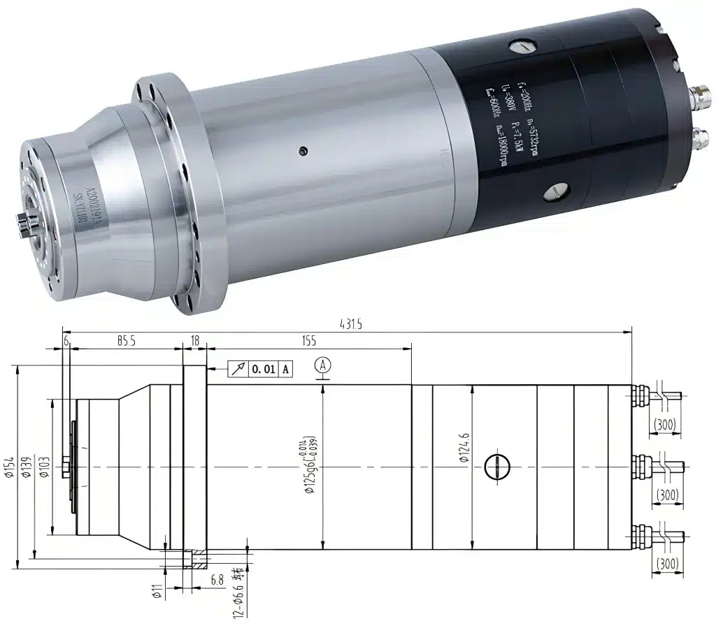 - Robust Mechanical Design: Features a BT30 tool holder with a drive key for positive torque transmission, a heavy-duty bearing system (7008×2 / 71910×3), and a 125mm flange for secure mounting.