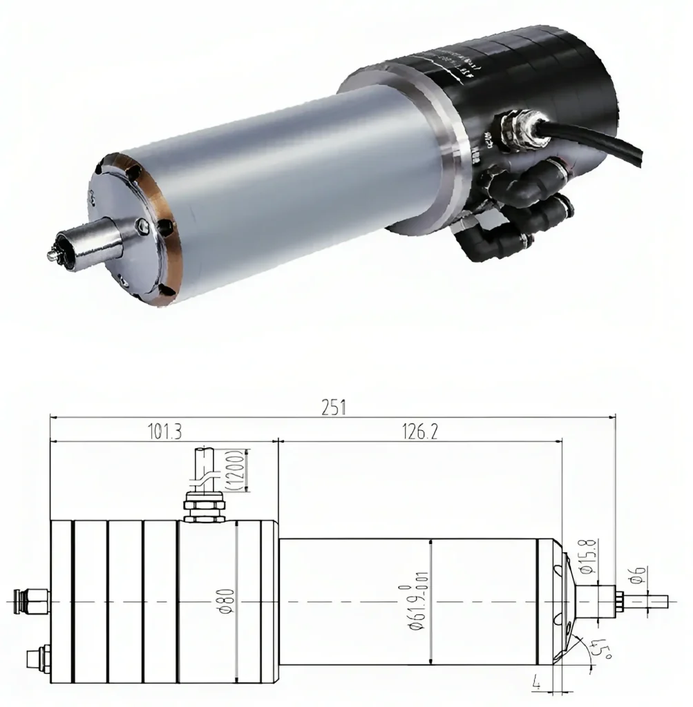 The SFG62J-C3A is a professional-grade 62mm-diameter electric spindle engineered to deliver exceptional surface finishes for High-Gloss Machines (Mirror Surface Machining) and High-Precision Engraving & Milling Centers. Distinguished from its counterparts by its optimized 1.8KW power rating and versatile collet system, this model is purpose-built for applications where flawless surface integrity, supreme accuracy, and flexible tooling are paramount. It achieves the perfect synergy of high speed, thermal stability, and minimal vibration for impeccable results across a wider range of tool sizes.